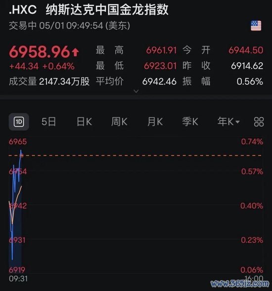 中概股方面,纳斯达克中国金龙指数直线拉涨,多数中概股飘红,万国数据涨逾4%,高途、金山云涨超2%。
